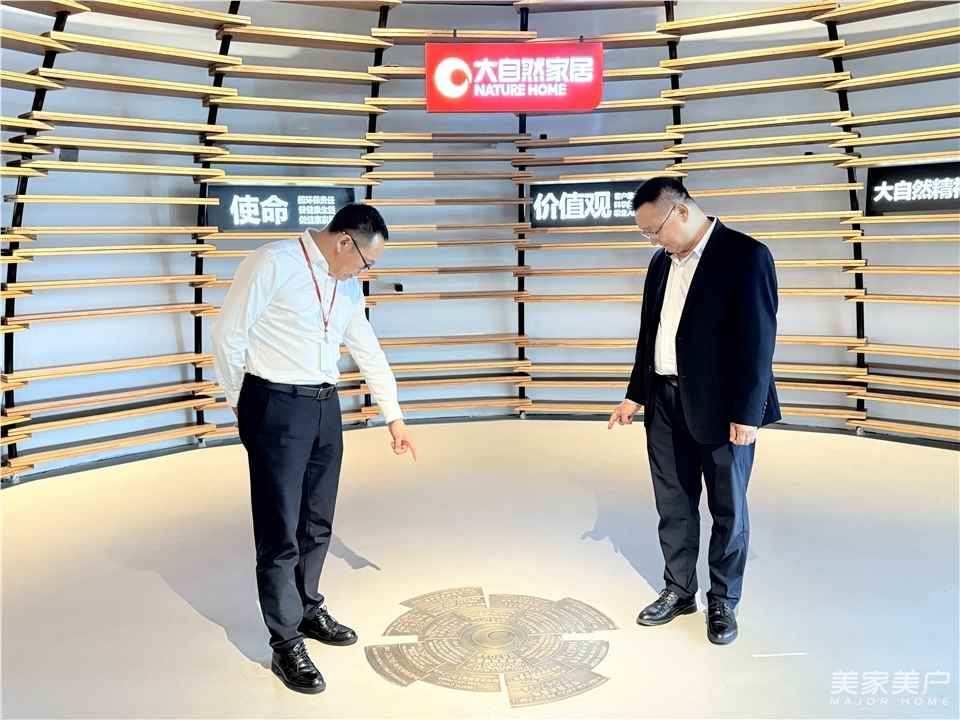 在大自然总裁办主任王世荣的陪同下,徐生会长一行参观了大自然家居文化馆和展厅。在大自然家居文化馆,通过丰富的图文资料与实物展示,全面了解了大自然家居自1995年创立以来的发展历程、企业文化以及社会责任,亲身感受大自然家居的多元化产品矩阵。