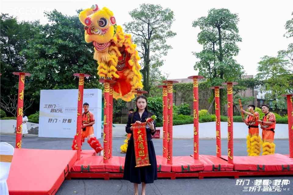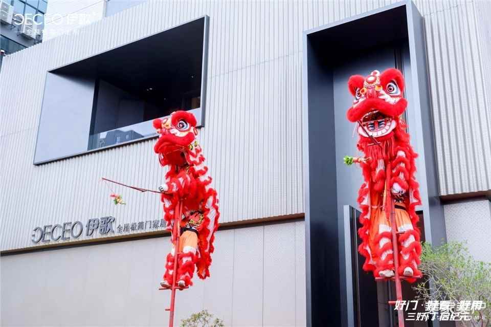 以传统醒狮之礼盛大启幕——点睛破鸿蒙,朱砂落而狮目炯,赋予品牌新生机;高杆采天财,凌空一跃揽乾坤,寓意登顶行业标杆;猪笼纳地财,俯身探水聚福泽,扎根品质守护万家;八凳踏八方,辗转腾挪拓疆域,呼应全屋生态布局;高台步步升,巅峰展卷启新程,见证从单品到空间方案的跨越;梅花桩上立潮头,五福临门蒸蒸日上,彰显革新工艺引领美学未来。以狮魂铸匠心,以极简承传统,伊歌“三好门”邀您共启家居新纪元!