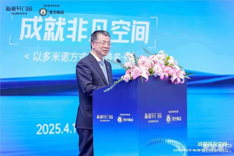 中国建筑材料流通协会会长秦占学也在致辞中强调,“门窗作为建筑物外立面装饰材料之一,其性能质量对居住安全和生活品质产生重要影响。新豪轩门窗大力发展新质生产力,加速数字化转型,以智能、绿色为制造之基,向吉尼斯世界纪录称号发起挑战,是行业高质量发展的生动写照,更是中国制造业从“规模”向“质量”跃迁的缩影,将共同推动中国门窗向全球价值链高端迈进!”