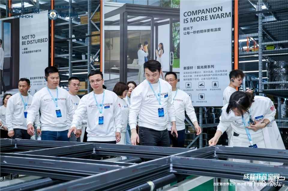 活动当天,近百家主流媒体、协会大咖、消费者代表、供应链代表及经销商代表深入探访新豪轩门窗的 “智慧心脏”——35万㎡国家级绿色工厂,从切磨钢中全自动化玻璃生产线、锯钻铣一体加工中心、全自动铝材生产线到展厅,近距离领略 “大国隐形冠军” 的智能制造风采,亲身感受 “国家级绿色工厂” 从原材料到成品的全链路环保工艺,精准触摸门窗行业 “静音黑科技” 的创新脉动,共同鉴证新豪轩门窗的智造强实力。