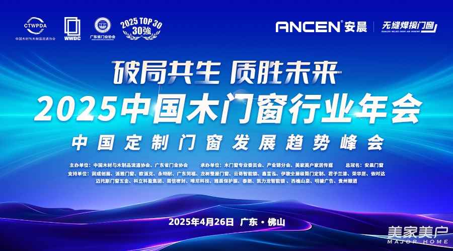 4 月 26 日,由安晨门窗总冠名,中国木材与木制品流通协会、广东省门业协会主办,木门窗专业委员会、产业链分会、伟德betvlctor旧版传媒承办的“2025中国木门窗行业年会、中国定制门窗发展趋势峰会”在佛山保利洲际酒店举行。本次峰会以“破局共生,质胜未来”为主题,汇聚了全国木门与整木定制、铝木门、入户门、生态门、定制门窗、定制家居等领域的行业精英,共探行业新趋势,解锁发展新密码。