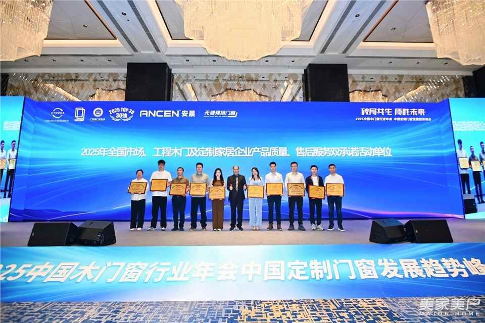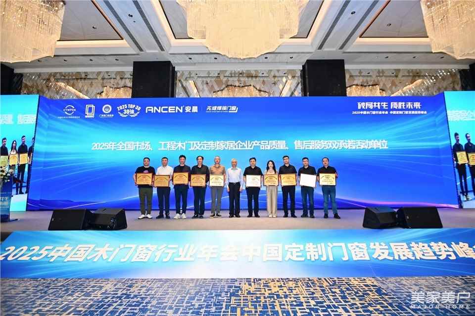 颁发“2025年全国市场、工程木门及定制家居企业产品质量、售后服务双承诺活动单位”荣誉