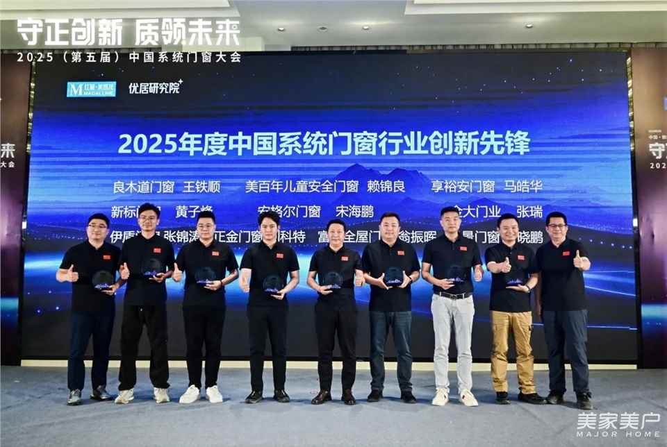 2025年度中国系统门窗行业创新先锋:良木道门窗 王铁顺、美百年儿童安全门窗 赖锦良、享裕安门窗 马皓华、新标门窗 黄子烽、安格尔门窗 宋海鹏、金大门业 张瑞、伊盾门窗 张锦涛、简纳斯门窗 罗聪、阿尔卑斯门窗 饶欣、帕豪门窗 张驰、伊博莱门窗 张隆隆、维盾门窗 张斌、亿合门窗 吴永康、正金门窗 刘科特、富轩全屋门窗 翁振晖、极景门窗 叶晓鹏、博仕门窗 李海凤、圣堡罗整体门窗 陈小庭、绿盾门窗 陈涛。(排名不分先后)。