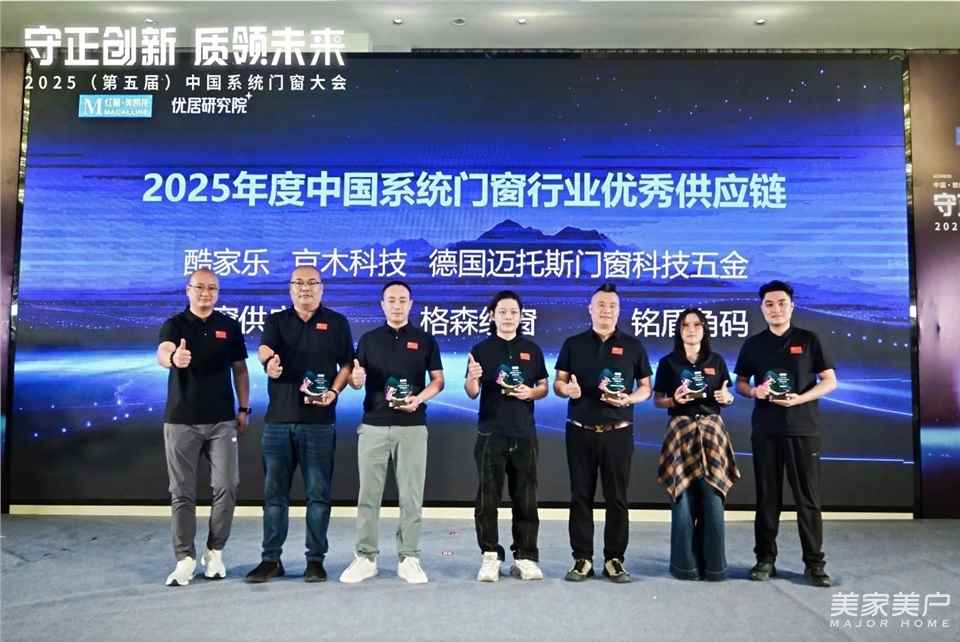 2025年度中国系统门窗行业优秀供应链:酷家乐、京木科技、德国迈托斯门窗科技五金、中窗供应链、格森纱窗、铭盾角码。(排名不分先后)。