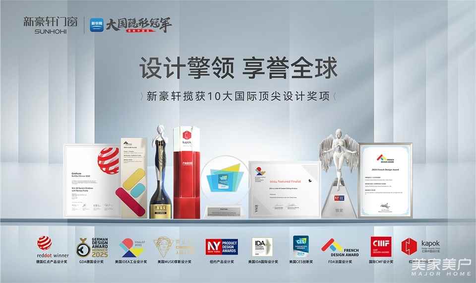 事实上,新豪轩门窗不仅是门窗行业唯一企业入选新华网 “极致中国造・大国隐形冠军”的品牌,还是行业内首家且唯一获得德国红点产品奖、纽约设计奖等十大国内外顶尖设计奖项的企业。新豪轩门窗对品牌影响力的打造,也为中国门窗产品走向世界奠定坚实的基础。