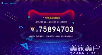 2016年11月11日,玛格家居旗舰店首次参加双十一战役,最终以75,894,703成交额完美收官,并勇夺实木定制品类第一名,跻身衣柜定制第五名、全屋定制第八名。玛格自建商城与天猫旗舰店正式运营以来,充分发挥“全国联动,线上线下齐发力”的优势,辅以“金玛服务”发挥终端优势,大大提升玛格的品牌影响力和竞争力。