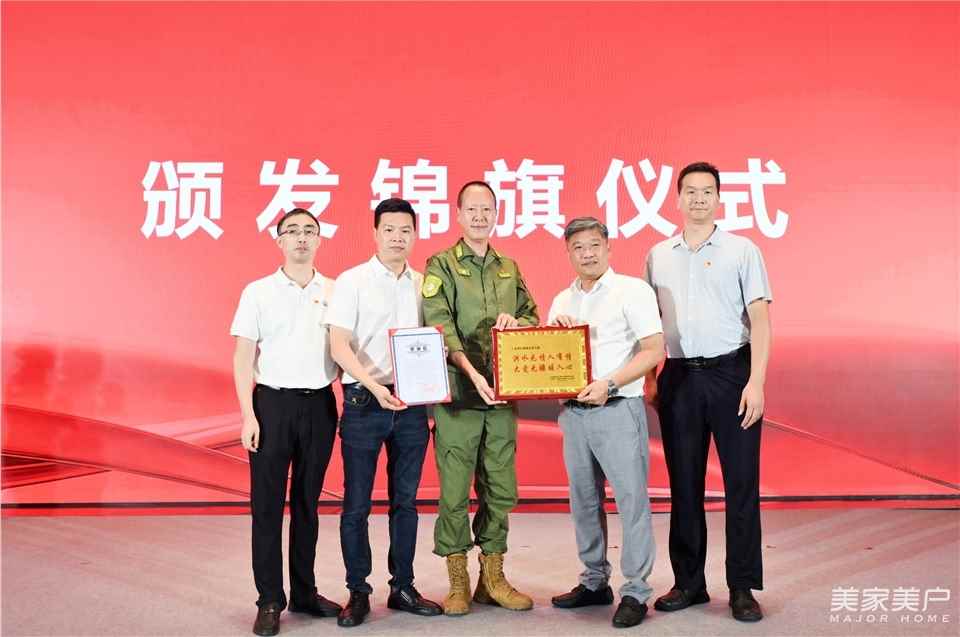 多年来,广东省门业协会与佛山市南狮退役军人志愿救援队一直保持着良好的沟通与互动,全力支持应急救援工作,并联动会员单位向受灾地区捐赠物资。晚宴现场,广东省门业协会党支部书记、佛山市南狮退役军人志愿救援队队长马建华向协会授予锦旗,并代读贵州榕江抗洪抢险表扬信,感谢广东省门业协会全体会员在危难时刻的火速驰援。