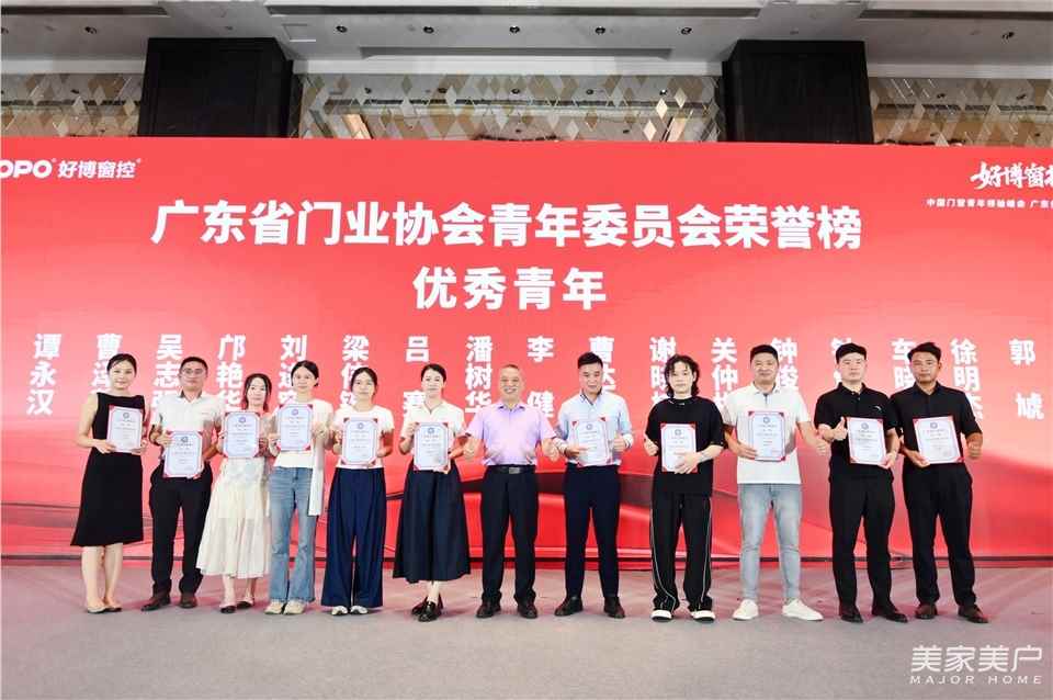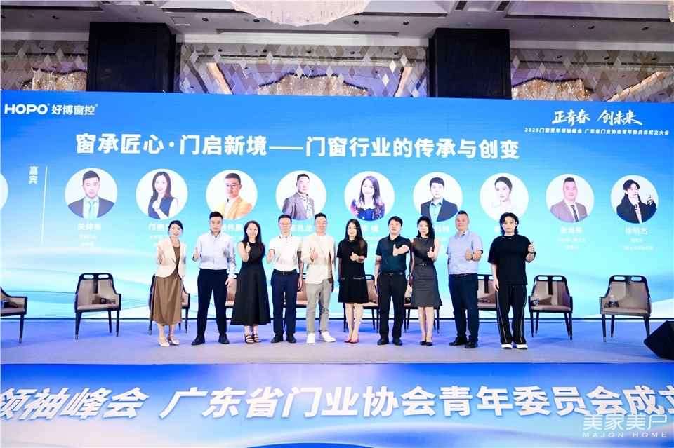 7 月 29 日,以“正青春,创未来”为主题的“2025门窗青年领袖峰会暨广东省门业协会青年委员会成立大会”在佛山保利洲际酒店盛大召开。广东省门业协会会长、派雅门窗董事长李钧洪,广东省门业协会理事长、润成创展董事长关润开,广东省门业协会荣誉会长、龙树整屋门窗董事长邓树生,广东省门业协会党支部书记、佛山市南狮退役军人志愿救援队队长马建华,广东省门业协会青年委员会新当选会长、新豪轩门窗总裁冯佐星,广东省门业协会铝木门专委会会长、鑫兆龙铝业创始人陈兆龙,广东省门业协会纱窗专委会会长、广东盛度铝业总经理许晓龙,广东省门业协会执行会长徐生、秘书长饶德亮等协会领导,以及门窗行业优秀企业家、“创二代”等行业精英,与门窗行业上下游企业代表齐聚一堂,共同见证了协会青年委员会的成立。