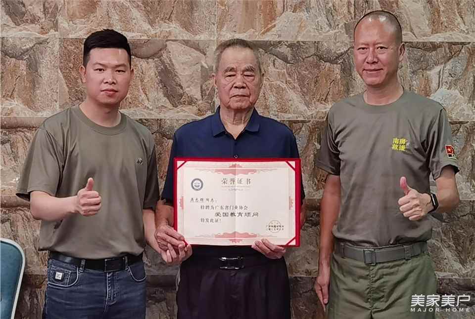 广东省门业协会执行会长徐生在讲话中向老英雄致以深切敬意:“您用鲜血铸就的功勋,是我们民族精神的灯塔。