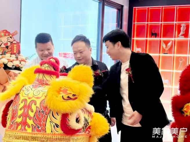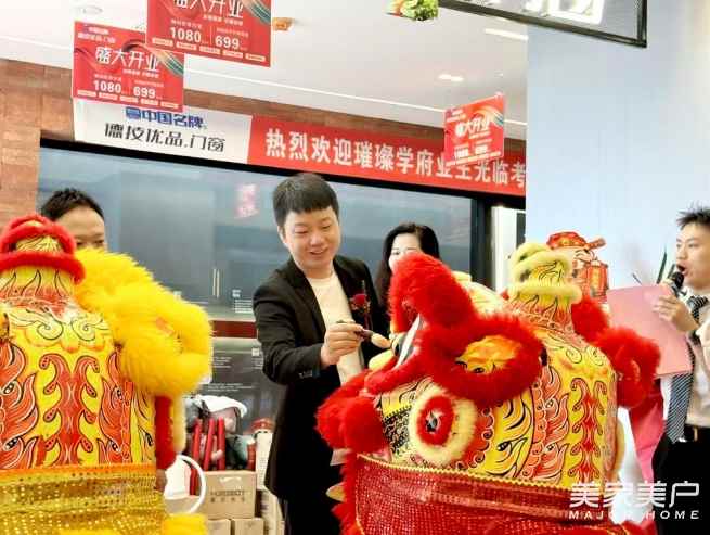 在最受瞩目的“点睛”环节,德技优品门窗总经理叶杨勇、长沙德技优品门窗总经理杨谨、长沙高桥居然之家商场领导方总共同执笔,为祥狮点睛。笔落睛开,刹那间焕发祥狮灵气,象征着新店生意兴隆,前程似锦,也将现场气氛推向了高潮。随后,各位嘉宾共同为新店剪彩,宣告德技优品门窗长沙第三旗舰店正式开业迎客!