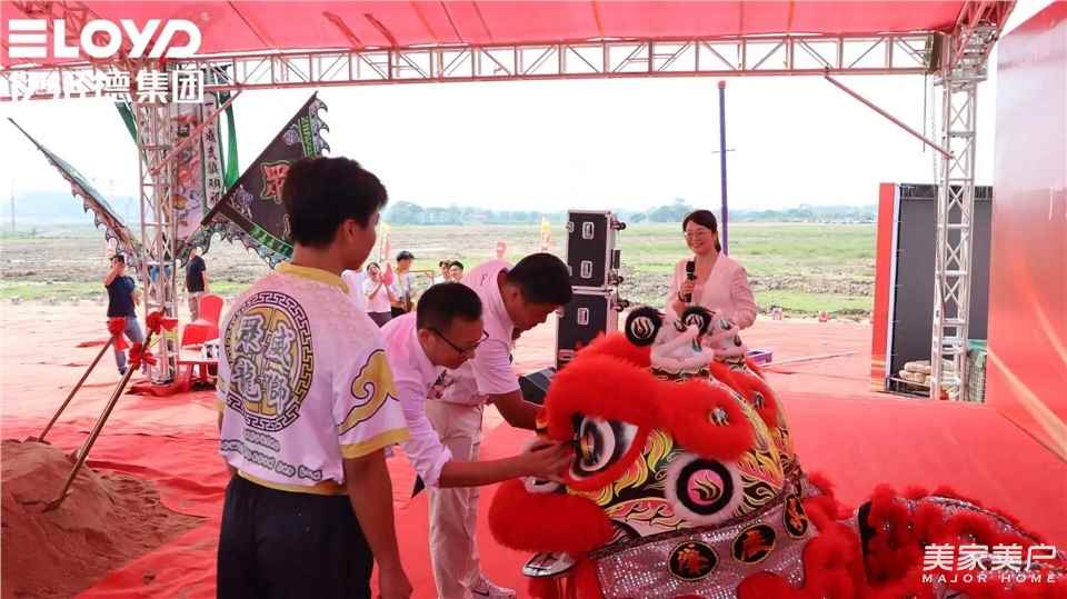 良辰吉时,启幕新章;礼炮齐鸣,锣鼓喧天。伴随着铿锵有力的锣鼓声,寓意吉祥红火的醒狮整齐排列台上,伊洛德集团董事长王礼强、欧迪森门窗总经理黄磊共同为醒狮作“点睛”仪式。点睛后的雄狮精神威猛,寓意伊洛德集团智能家居智造产业园项目建设一帆风顺,宏图大展!