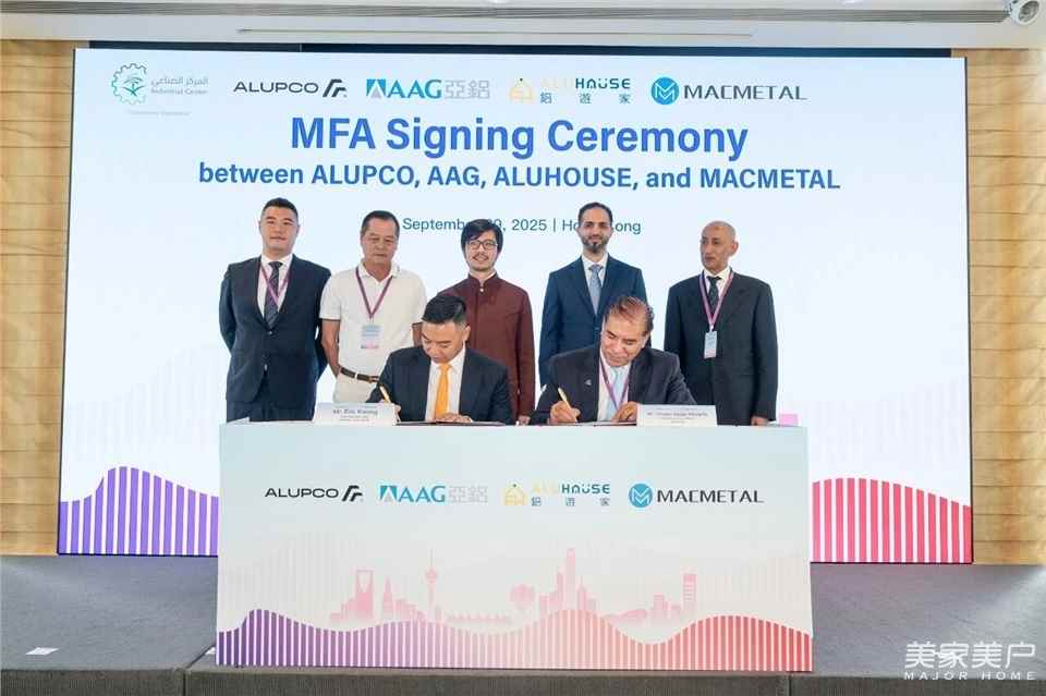 2025年9月29日,中国铝型材制造业巨头——AAG亚铝集团,正式宣布与沙特阿拉伯王国的铝型材生产商ALUPCO签署总体框架协议。此次战略合作涉及AAG亚铝集团旗下分公司铝遊家(AluHouse)及迈科美(MacMetal),双方将成立三家全新合资企业,总投资额将达5亿美元,并计划于沙特阿拉伯打造规模最大、功能最完备的铝加工产业基地,重点聚焦铝型材生产、模块化建筑及太阳能板边框等核心业务。