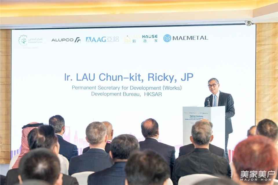 随着中东地区对铝产品的需求日益增长,双方将整合各自优势和专业知识,在沙特建设全新的铝加工产业基地,采用先进的可持续发展技术开拓当地市场。这次合作充分体现了中国“一带一路”倡议所倡导的加强贸易联系、促进经济多元化,以及推动地区绿色技术发展的目标。此举也契合沙特“2030愿景”的战略重点,专注于铝加工产业制造领域,将原铝加工转化为契合市场需求的成品与综合解决方案,同时推动跨区域互联互通及技术转移。此次签约仪式在香港隆重举行,香港特别行政区政府及沙特阿拉伯政府的多位高级官员到场,包括发展局常任秘书长(工务)刘俊杰太平绅士、香港“一带一路”专员何力治先生以及沙特国家工业发展中心(NIDC)矿产与金属部总监Mahmoud Al - Asmari先生,另有多位业界翘楚亲临见证。