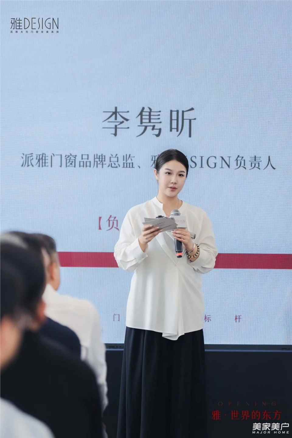 派雅门窗品牌总监、雅DESIGN负责人李隽昕在致辞中,对雅DESIGN所主张的四大门窗设计理念进行了深度解构,全面阐释了其为高端大宅人居赋能的核心内涵。她强调,雅DESIGN既传承“天人合一”的东方精神,又沉淀派雅30余载匠心经验,致力于为全球建筑设计师、大宅业主提供大宅门窗全案系统解决方案,推动高端门窗从功能向生活美学进阶。