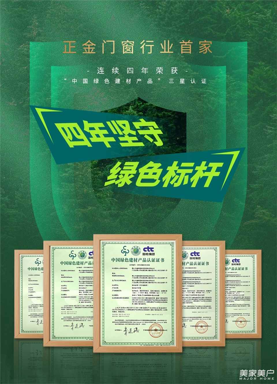 绿色发展 行业引领|正金门窗行业首家连续四年荣获“中国绿色建材产品”三星认证