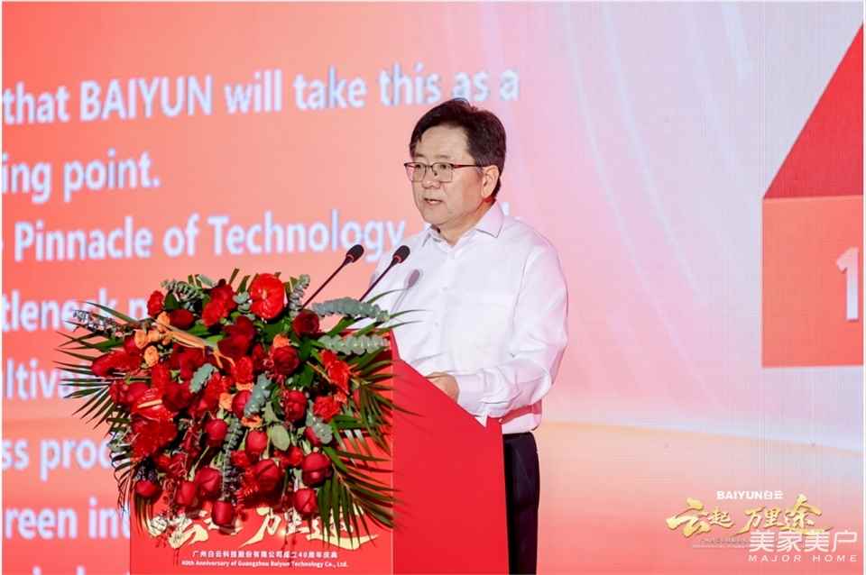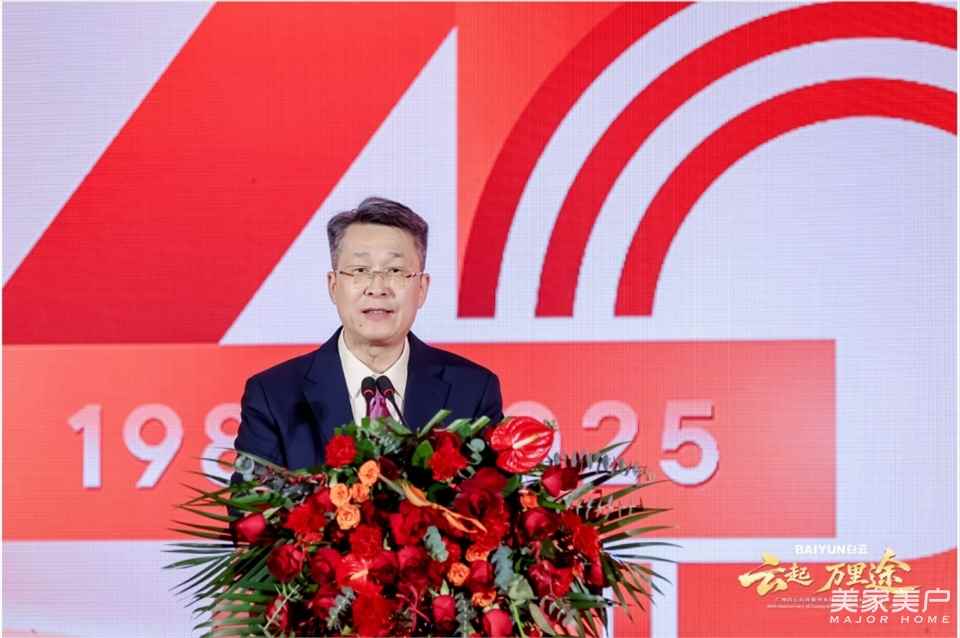 庆典在庄重而热烈的氛围中拉开帷幕。白云科技董事长吴浩中先生上台致辞,向四十年来始终信任与支持白云科技的各位领导、合作伙伴与朋友们,表达了最诚挚的感谢。他表示,过去的四十年仅是一个序章,白云科技将以此次庆典为新起点,与各位伙伴并肩同行,共同为行业进步与美好生活赋能。