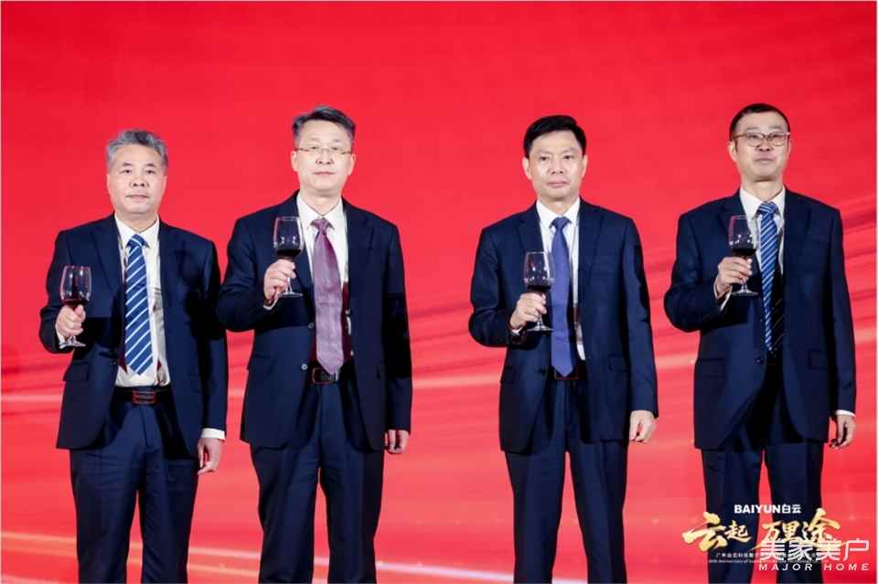 在热烈的掌声中,白云科技吴浩中董事长上台致祝酒词。随后,总经理缪明松、副总经理黄恒超、副总经理刘振海一同上台,与全体嘉宾、员工及合作伙伴共同举杯,为白云四十华诞送上真挚祝福,为未来征程注入蓬勃信心。