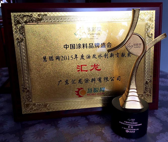在此番角逐中,汇龙涂料以绝对票选优势,再获2015年度华彩奖家具漆影响力品牌和“油改水”创新贡献奖两项殊荣。