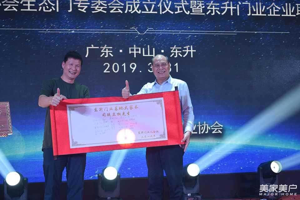 会上,东升门业人邀请广东省门业协会会长关润开为宝润木业董事长司徒立权颁发“东升门业基地大家长”荣誉,是东升门业人对司徒立权先生为行业的努力和奋斗表达的敬意,也是希望着司徒立权先生能够再创佳绩,为东升门业人点亮明灯!