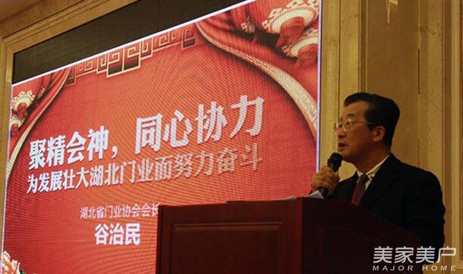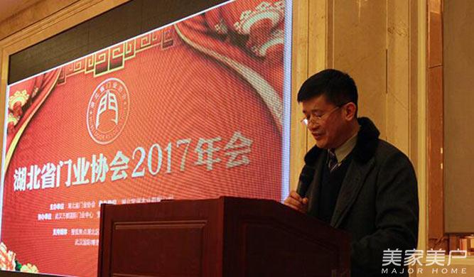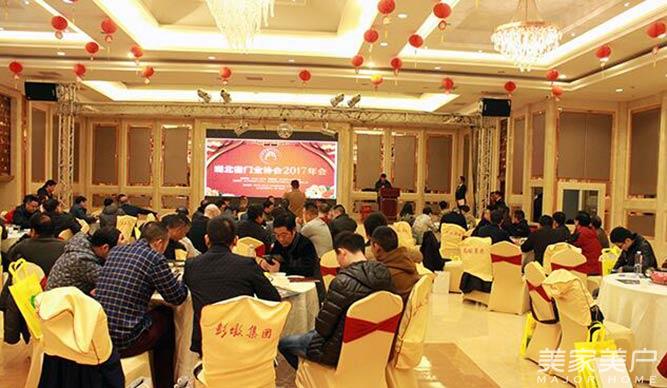 12月27日,以“交流 合作 创新 共赢”为主题的2017年湖北省门业协会年会在荆门苏州府紫金殿酒店隆重举行,湖北省门业协会会长、武汉万都国际门业中心总经理谷志民先生、湖北省门业协会秘书长柯晴川、湖北省家具协会执行秘书长龚德洪先生、湖北室内设计行业协会会长、东湖设计有限公司董事长周宪忠先生、湖北宝源木业有限公司副总经理袁功志先生、湖北柯尚门业董事长罗杰先生、哥特尔木业总经理王静女士、湖北永安门业副总经理艾奇志先生、宜昌盼盼木制品有限公司彭小俊先生、湖北吉祥照门业总经理赵培华先生、湖北千川门窗副总经理付建照先生以及来自全国各地的百余名家居行业上下流产业链的老板及媒体共同出席湖北省门业协会这个大家庭的盛会。